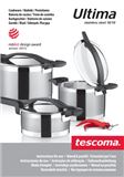 Ci congratuliamo con Voi per l’acquisto di questo prodotto Tescoma. Grazie per aver acquistato Tescoma. Se necessario, contattare il proprio rivenditore o direttamente Tescoma sul sito web www.tescoma.it. CARATTERISTICHE Pentolame di alta qualità dotato di un innovativo sistema di controllo vapore e scolatura. Coperchi in vetro ed acciaio inox orientabili in 3 posizioni: 1. NESSUN FORO PER VAPORE in modo da raggiungere velocemente il punto di ebollizione e scaldare gli alimenti risparmiando energia, 2. PICCOLO FORO PER VAPORE per cucinare senza correre il rischio che l’acqua di cottura fuoriesca dalla pentola e per scolare verdure tagliate in piccoli pezzi, 3. FORO GRANDE PER SCOLARE patate e pasta e per cucinare gli alimenti intensamente senza correre il rischio che l’acqua di cottura fuoriesca dalla pentola. Il coperchio può essere anche agganciato verticalmente alle impugnature laterali; il vapore condensato scorrerà direttamente all’interno del recipiente. Prodotte in acciaio inossidabile 18/10, le impugnature sono in plastica resistente che non brucia se le pentole vengono utilizzate correttamente. Tutti i recipienti sono provvisti di una scala graduata interna. Le pentole ULTIMA hanno un fondo sandwich extra spesso. Il calore viene trasferito dal piano cottura ai recipienti senza alcuna variazione e persino su tutto il fondo. Cucinare è più semplice evitando che gli alimenti brucino. Il fondo sandwich consente di trattenere il calore in modo straordinario e ciò chiaramente consente di risparmiare energia. Il piano cottura può essere spento prima della fine del processo di cottura ed è possibile cucinare gli alimenti mantenendo persino la fiamma medio – bassa. Gli alimenti lasciati all‘interno dei recipienti cottura mantengono a lungo la loro temperatura. Le pentole ULTIMA sono prodotte per essere utilizzate in modo intenso e prolungato e per consentire un processo di cottura più semplice ed economico. Le pentole ULTIMA sono adatte a tutti i tipi di piano cottura – gas, elettrico, vetroceramica ed induzione.