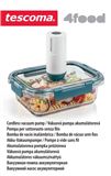Kiválóan alkalmas élelmiszerek vákuumcsomagolására, remekül használható a 4FOOD vákuumos tárolódobozokkal, tasakokkal, fedőkkel, kupakokkal és borzárókkal. Kényelmes érintőgombos vezérlés, a szívás automatikus leállítása, eltávolítható vákuumozó fej az egyszerű tisztításért. Erőteljes akkumulátor, amely mobiltelefonokhoz használatos adapterrel és a mellékelt USB-C kábellel tölthető. Ellenálló műanyagból és szilikonból készült. Figyelmeztetés: A 4FOOD vákuumpumpát ne használja gyorstöltőkkel, a töltőadapter engedélyezett teljesítménye 1 A. A 4FOOD lezárható vákuumtasakokat (kód: 897054), a 4FOOD vákuumos üveg tárolódoboz (897064, 897066), a 4FOOD vákuumos fedőt (897068), a 4FOOD vákuumos kupakot (897069) és a 4FOOD vákuumos borzárót (897070) keresse a www.tescoma.hu webáruházban és Hőmérséklet-ingadozásoktól, statikus elektromosságtól és mágneses sugárzás hatásától védett helyen használja és tárolja. Gyermekektől elzárva tartandó. A vákuumszivattyút ne merítse vízbe vagy más folyadékba. Ügyeljen arra, hogy vákuumozás közben ne kerüljön folyadék vagy nagyobb mennyiségű por a készülékbe. Meghibásodás esetén ne javítsa a terméket, forduljon a TESCOMA Szervizközpontjához, (elérhetőség a www.tescoma.hu oldalon). Műszaki paraméterek Szívóteljesítmény: 5 W Beépített akkumulátor: Li-Ion 3,7 V / 650 mAh a TESCOMA márkaboltokban. HASZNÁLATI ÚTMUTATÓ Biztonsági előírások