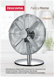 j Instruções de utilização Instruções de segurança A ventoinha só pode ser utilizada para a sua finalidade, isto é, para a ventilação do ambiente. AVISO! NUNCA USAR A VENTOINHA SEM A GRELHA DE PROTEÇÃO COLOCADA. NÃO RETIRAR A GRELHA DA VENTOINHA APÓS A MONTAGEM. NUNCA INTRODUZIR OBJECTOS NA GRELHA DA VENTOINHA. NÃO UTILIZAR A VENTOINHA NA CASA DE BANHO. NUNCA TOCAR NO APARELHO COM AS MÃOS MOLHADAS OU HÚMIDAS. O aparelho pode ser usado por crianças com idade igual ou superior a 8 anos e pessoas com capacidades físicas, sensoriais ou mentais reduzidas ou falta de experiência e conhecimento, apenas devem usar este electrodoméstico sob supervisão ou depois de terem sido devidamente instruídos sobre o seu uso seguro e compreender os riscos relacionados. As crianças devem ser supervisionadas para garantir que não brincam com o aparelho. A utilização e limpeza do aparelho não podem ser feitas por crianças sem supervisão. Nunca deixar qualquer parte da embalagem ao alcance de crianças. Nunca puxar o cabo da corrente ou o próprio aparelho para o desligar da tomada. Retirar sempre a ficha da tomada antes de efectuar qualquer operação de limpeza ou manutenção. Por razões de segurança, um cabo de alimentação danificado deve ser substituído num centro de assistência autorizado . No caso do aparelho deixar de funcionar, todas as reparações devem ser efectuadas por um centro de servi- ço qualificado . Para informações de contacto, consulte www.tescoma.pt. Parâmetros técnicos Voltagem: 230 V Entrada de energia: 45W Legenda (ver página inserida no meio destas instruções) 1. Grelha de proteção frontal / 2. Porca da hélice (rosca inversa) / 3. Hélice / 4. Porca da grelha de proteção traseira 5. Grelha de proteção traseira / 6. Eixo da hélice / 7. Interruptor de velocidade / 8. Botão de oscilação 9. Tampa do motor / 10. Articulação de ajuste de inclinação / 11. Cabo de alimentação com ficha 12. Haste / 13. Base / 14. Porca da base / 15. Parafuso Antes da primeira utilização Desempacotar todas as partes do produto e eliminar as impurezas com um pano seco ou ligeiramente humedecido. Montagem (ver página inserida no meio destas instruções) Unir a haste à base e apertar a porca (1). Usar uma chave de estrela pequena para retirar o parafuso da grelha de proteção traseira (2). Anexar a grelha de proteção traseira à tampa do motor (3) e fixar com a porca (4).