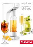 Maintenance and cleaning Clean the filling valve and the bottle under running water after each use; do not wash the bottle or the filling valve in dish washer! Remove the removable outer bottom from the bottle before washing by slightly turning it counter-clockwise and attach it back after washing and leaving it to dry. Avoid aggressive chemicals, sand-based cleaning agents and scourers for cleaning the bottle. Wipe the drink maker with a moistened dishcloth when needed; do not wash it in dishwasher. Storage Refrigerate and store sparkling drinks in the refrigerator in the bottle with the closure on; do not place the bottle into the freezer and do not use it in a microwave oven. Replacing the charger Remove the charger from the drink maker after exhausting the content of the charger (no hissing sound is heard after pressing the button and no gas is entering the bottle with the drink) and put the plastic cap onto the charger. Replace the empty charger with a new one at the TESCOMA retail centres (for a list of these please visit www.tescoma.com ). Replacing the bottle Use the bottle for a maximum of 2 years from the date of purchase, then replace it with a new one. If the bottle shows any signs of distortion or damage, stop using it and return it for a new one – for spare bottles, visit a TESCOMA retail centre or go to www.tescoma.com . Safety instructions for the charger The charger contains pressurised CO 2 (carbon dioxide). Protect against impact or fall! Do not expose the charger to a direct source of heat or sunshine; store and use at temperatures from 1 to 40 °C. Do not refill the charger yourself, do not pierce, do not remove the valve. Do not remove the charger from the Sparkling drink maker during the carbonating process. Keep out of the reach of children. General safety instructions Prepare drinks in Sparkling drink maker myDRINK exclusively in a vertical position. Make sure that the bottle is filled with water, fruit lemonade, etc. before each use. Do not remove the bottle and the charger from the drink maker while carbonating. If gas escapes from the charger even after the carbonating button is released, do not remove the bottle and the charger from the drink maker, keep the device in a vertical position and wait until the gas ceases to hiss. Check whether the filling valve is properly attached to the bottle, the bottle is inserted in the drink maker in the folded position and the charger is tightened well. Then unscrew the charger, check it, insert it back into the drink maker and tighten well. If the gas continues to hiss after releasing the carbonating button, do not repair the drink maker yourself but contact a TESCOMA service centre.